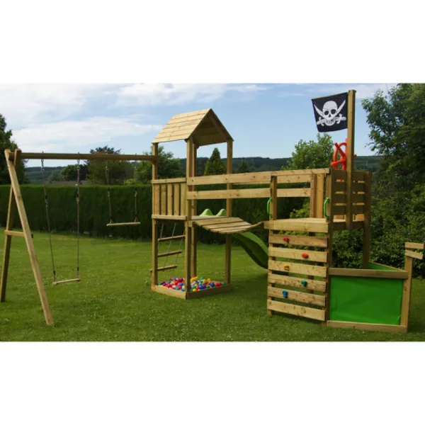 Les Enfants Pourront Jouer A Plusieurs Et Votre Jardin Va Devenir Leur Terrain De Jeu. Tout En S’Amusant, Ils Vont Developper Leur Imagination En Se Prenant Pour Des Pirates Et En Guettant Les Ennemis En Haut De La Tour, Mais Aussi Leur Motricite Et Leur Dexterite En Grimpant Au Mur D’Escalade Ou En Faisant Les Acrobates Grace Au Trapeze.