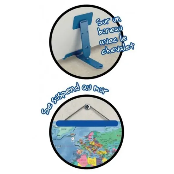 Un Planisphere De 70 X 38 Cm Pour Découvrir Les Pays Du Monde. La Carte Peut S’Accrocher Au Mur Ou Se Poser Sur Le Bureau Grace A Son Systeme De Chevalet.