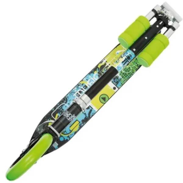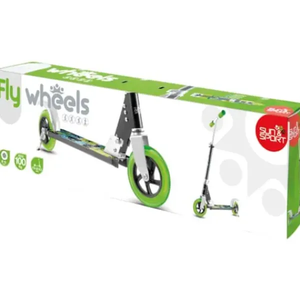 Suspension Avant Integree Pour Absorber Un Maximum De Chocs Et Rouler Confortablement, Roues 205 Mm En Pu Coule Haute Qualite Et Haut Rebond Absorbant Les Vibrations Pour Une Qualite De Glisse, Guidon Aluminium Extra Large Incurve Avec Poignees Confortables Et Ajustable Sur 3 Niveaux De Hauteur (98 A 108 Cm) Afin De S’Adapter A La Taille De L’Enfant. Plateau Antiderapant Avec Une Bequille, Frein Arriere Et Frein Manuel Au Guidon.