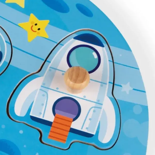 Puzzle Sur Le Theme De L’Espace Avec Des Tenons Pour Manipuler Facilement Les Pieces Du Puzzle. Tout En S’Amusant Avec Ce Puzzle En Bois, Votre Enfant Developpera Sa Motricite Et Son Imagination.