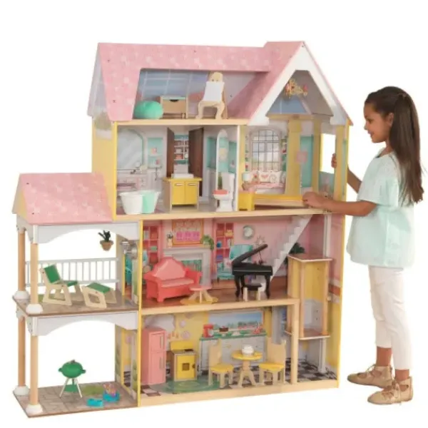 Fascinez Les Enfants Curieux Avec Des Heures De Jeu Imaginatif Grace A La Maison De Poupee Kidkraft Lola ! Avec Ses Quatre Niveaux De Jeu, Ses Six Pieces Et Son Abri Spacieux, Cette Maison De Poupées Est Assez Spacieuse Pour Donner Vie Aux Plus Grands Reves Et Aux Plus Grandes Aventures ! Les Enfants Adoreront Creer Des Histoires Passionnantes Pour Leurs Poupées De 30 Cm. Un Elegant Ascenseur Qui Monte Jusqu’Au Premier Etage Rend Le Jeu Interactif, Amusant Et Excitant. Superbe Oeuvre D’Art Representant Une Belle Coiffeuse, Un Coin Fenetre Douillet Avec Des Oreillers En Peluche Et Une Grande Cheminee.