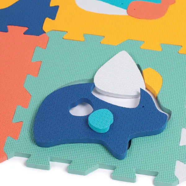 Eveillez Bebe En Tout Securite Avec Ce Tapis En Mousse. En Plus Du Grand Puzzle, Les Animaux Proposent Egalement Une Activite D’Encastrement.