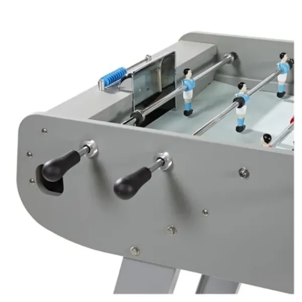 Jeu De Barres En Acier Avec Triple Chromage Et Joueurs Metal Visses Sur Les Barres, Décores A La Main. Puissance De Tir Et Parfait Controle De La Balle. Double Compteurs De Points Bicolores. Retour Lateral Des Balles. Meuble En Polyethylene Haute Densite.