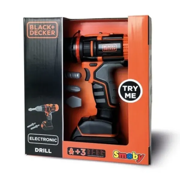 Avec Leur Perceuse Electrique Black & Decker, Votre Enfant Peut Visser Et Devisser Tout Ce Qu’Il Veut Dans La Maison. La Perceuse Est L’Accessoire Indispensable Des Vrais Bricoleurs. Pour Encore Plus De Realisme, Cet Outil De Bricolage Pour Enfant Possede 3 Embouts Interchangeables Pour Bricoler Comme Un Pro : Plat, Cruciforme Et Foret. Les Petits Peuvent Meme Regler La Vitesse Et Le Sens De Rotation De Leur Perceuse Black Et Decker Pour Visser Et Devisser Comme Ils Le Souhaitent. La Poignee Ergonomique Soft Est Parfaitement Adaptee Pour Une Prise En Main Facile Pour Les Petits. Ce Jouet Vous Promet Des Heures De Jeu Et De Bricolage A L’Infini. Vous Pouvez Meme Enlever Les Piles, Comme Une Batterie Amovible D’Une Vraie Perceuse.