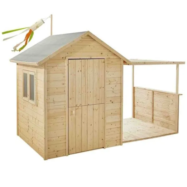La Maison A Une Porte Fermiere D’Une Hauteur De 1,26 M, Une Fenetre Avec Deux Battants Mobiles, Un Plancher Et Un Toit En Feutre Afin De Proteger La Cabane. Le Manche A Vent Sur Le Toit Va Plaire A Vos Bambins.