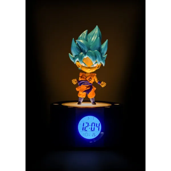 Un Réveil Representant Goku En 3D En Mode Super Saiyajin God Blue Qui Trouvera Facilement Sa Place Dans La Chambre De Votre Enfant. L’Ecran Retro Eclaire Comporte Un Affichage Digital De L’Heure, De La Date Et De La Temperature De La Piece. La Fonction Alarme Programmable Est Incluse. Le Personnage Est Eclaire Par Led.