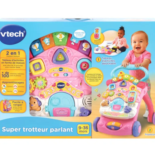 Le Nouveau Super Trotteur Rose De Vtech Possede 2 Fonctions : Trotteur Et Tableau D’Activités Detachable Pour Accompagner Votre Bebe De Partout.