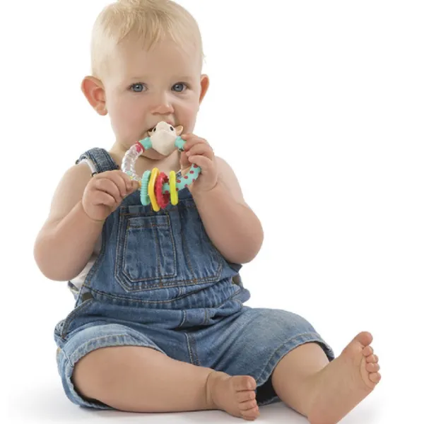 Ce Hochet Est Tres Ludique Car Il Possede Egalement Quatre Formes Geometriques Qu’Il Pourra Manipuler A Leur Bon Plaisir Pour Faire De Belles Découvertes Et Pour Apprendre Tout En S’Amusant. Il Appreciera De Toucher Et De Découvrir Differentes Textures Grace A Ce Hochet Multi-Texture Et Surtout, Ce Jouet Est Tres Facile A Manipuler Et Sans Aucun Danger.
