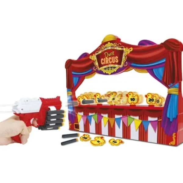 Qui Sera Le Meilleur Tireur ? Munis D’Un Pistolet A Flechettes, Les Enfants Devront Faire Preuve D’Agilite Pour Renverser Le Plus De Petits Canards.