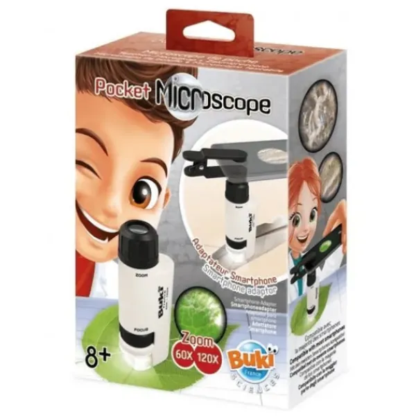 Découvrez Le Microscope Pocket, De La Marque Buki, Un Jouet Scientifique Qui Eduquera Les Enfants Et Leur Fera Découvrir Le Magnifique Monde De La Science. Avec Ce Microscope Dote D’Un Grossissement X120, Les Bambins Pourront S’Amuser A Observer Le Monde De L’Infiniment Petit. Votre Enfant Pourra Se Transformer En Chimiste Et Realiser De Nombreuses Experiences. Placez L’Echantillon Au Milieu Du Plateau, Reglez La Mise Au Point Et Observez L’Objet Sous Toutes Ses Formes.