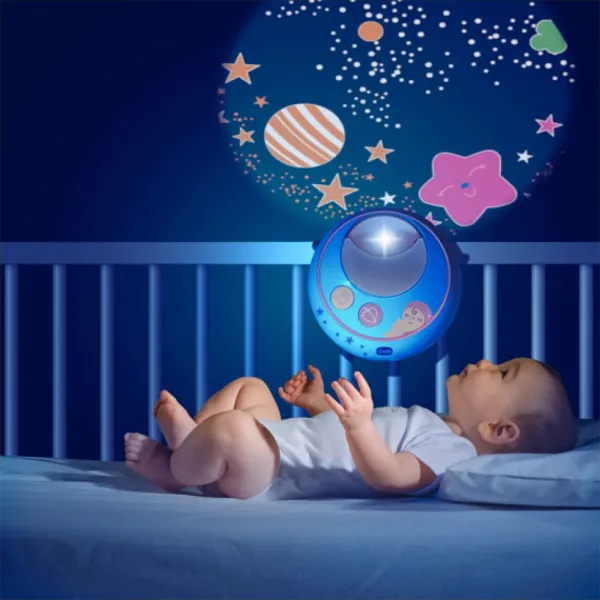 Une Veilleuse Pour Aider Bebe A S’Endormir En Douceur. L’Univers Etoile Du Cajole Bebe Dans Son Lit Grace Au Systeme Innovant De Double Projection. La Projection Se Diffuse A La Fois Sur Le Mobile Et Sur Le Plafond De La Chambre, Creant Un Moment Magique Et Apaisant Pour Bebe. Si Bebe Pleure, La Veilleuse Envoi 18 Minutes De Projection Et Papa Et Maman Grace A Une Telecommande Infrarouge Controlent A Distance Le Mobile.