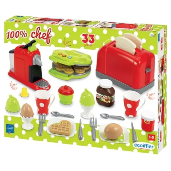Cet Ensemble Qui Contient Un Gaufrier, Un Grille-Pain, Une Machine A Cafe Et Des Accessoires Est Ideal Afin De Completer La Dinette Et La Cuisine De Votre Enfant.