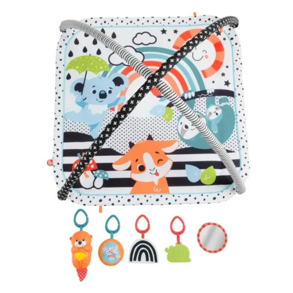 Avec Mon Tapis Sensoriel 3-En-1 De Fisher-Price, Bebe Peut Essayer De Toucher, Frapper Et Saisir Les 5 Jouets D’Activite A Accrocher : Un Miroir, Un Hochet-Herisson Souple Pour Que Bebe Se Découvre, Un Anneau De Dentition Escargot Sans Bpa, Un Jouet Arc-En-Ciel A Froisser Et La Loutre Musique Et Lumieres. La Loutre Accompagne Bebe Partout Et Joue De La Musique Et Emet Une Lumiere Douce Pendant 15 Minutes.