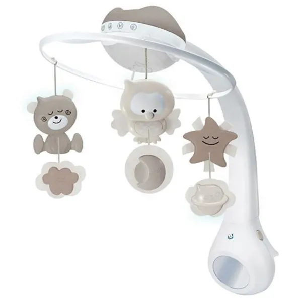 Des La Naissance, Le Mobile Fixe Sur Le Lit Permettra A Bebe D’Observer D’Adorables Animaux Flottant Au-Dessus Lui, D’Ecouter Une Musique Apaisante Et De Regarder Une Douce Lumiere.