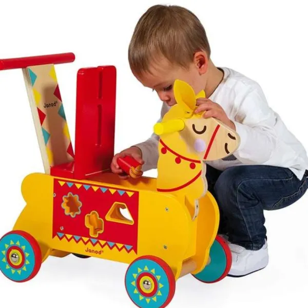 Bien Installe Sur Son Porteur En Bois Lama, Votre Enfant Pourra Se Promener Dans Toute La Maison Et Developper Son Equilibre Tout En S’Amusant. Un Porteur En Bois Solide Et Colore Qui Plaira A Bebe.
