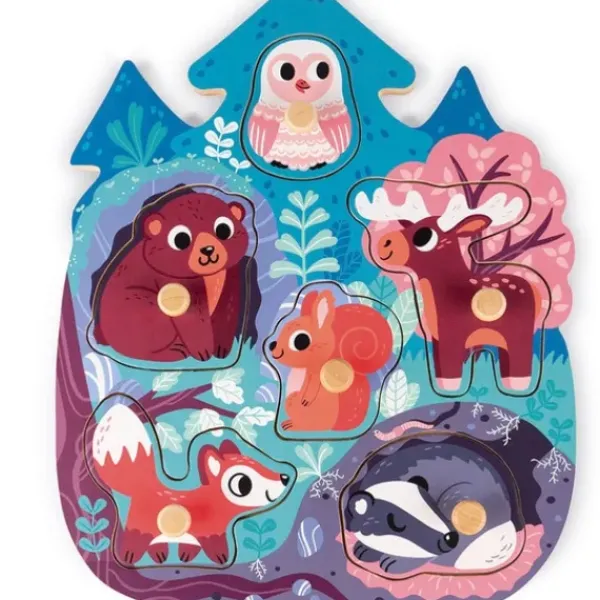 Le Puzzle En Bois Happy Forest De 6 Pieces Est Ideal Pour Les Petits.