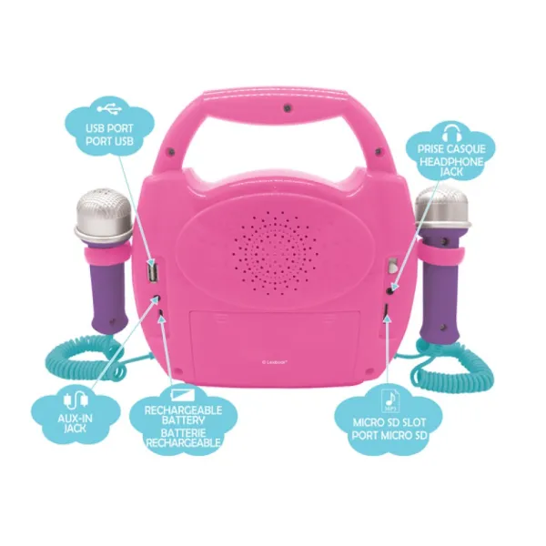 Avec Le Lecteur Karaoké Licorne Et Ses Deux Micros Avec Effets Lumineux Multicolores, Votre Enfant Peut Chanter Ses Chansons Favorites En Compagnie De Ses Amis !