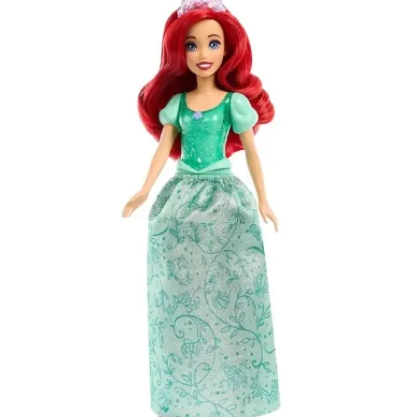 Cette Poupee Represente Ariel Mais Sous Sa Forme Humaine : Elle Porte Une Robe Verte Composee D’Un Bustier Moule Vert Paillete A Manches Bouffantes Et D’Une Jupe Verte A Motifs Egalement Pailletee. Pour Completer Sa Tenue, La Poupee Est Egalement Fournie Avec Un Diademe Mauve Et Une Paire D’Escarpins Mauves Pailletes.