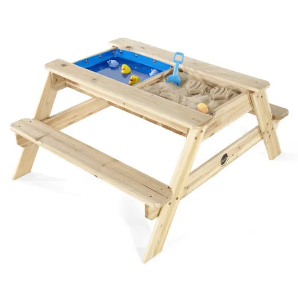 Le Bois Du Dessus De La Table S’Enleve Et Pour Se Transformer En Moitie Bac A Sable Et Moitie Bac A Eau.