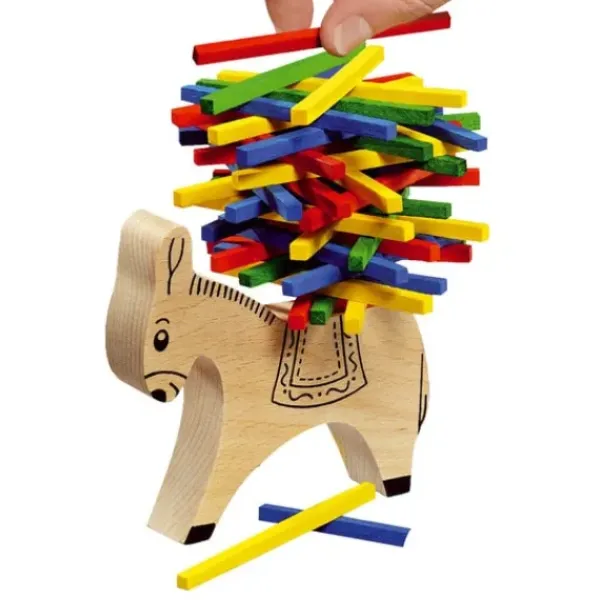 Un Jeu Avec Des Regles Simples Mais Ou Il Ne Faut Pas Trembler. Le But Du Jeu Est D’Empiler Tous Les Batonnets Sur Le Dos De L’Ane Sans Les Faire Tomber. Quand Le Petit Ane De Bois N’En Peut Plus De Porter Toutes Ces Buchettes De Couleur, Il Se Cabre Et Les Jette Au Sol. Le Premier Qui Y Arrive Gagne La Partie.