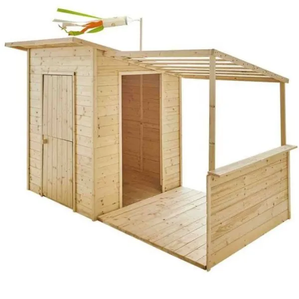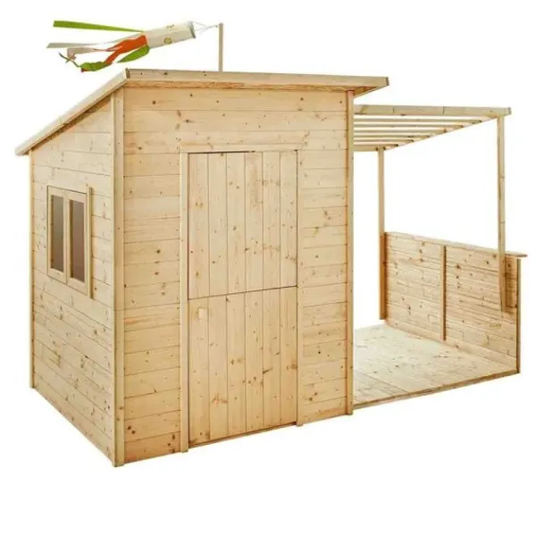 Une Cabane En Bois Avec Un Preau Afin De Pouvoir Jouer A Plusieurs. Une Maison Au Style Inspire Des Vacances Qui Va Stimuler L’Imagination Des Enfants Qui Aimeront Inventer De Nombreuses Histoires Dans Un Endroit Adapte Pour Eux.