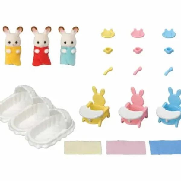 Les Adorables Triples Lapin Chocolat Rejoignent La Famille Des Lapins Chocolat. Vous Aurez 3 Petites Frimousses Sylvanian Families A Vous Occuper. Que Ce Soit Pour Manger, Prendre Le Bain Ou Dormir, Papa Et Maman Lapin Chocolat Vont Etre Occupes. Tout Est Prevu Dans Ce Coffret Pour Que Les Bebes Se Sentent Bien Des Leur Arrivee Dans Le Village Sylvanian Families.