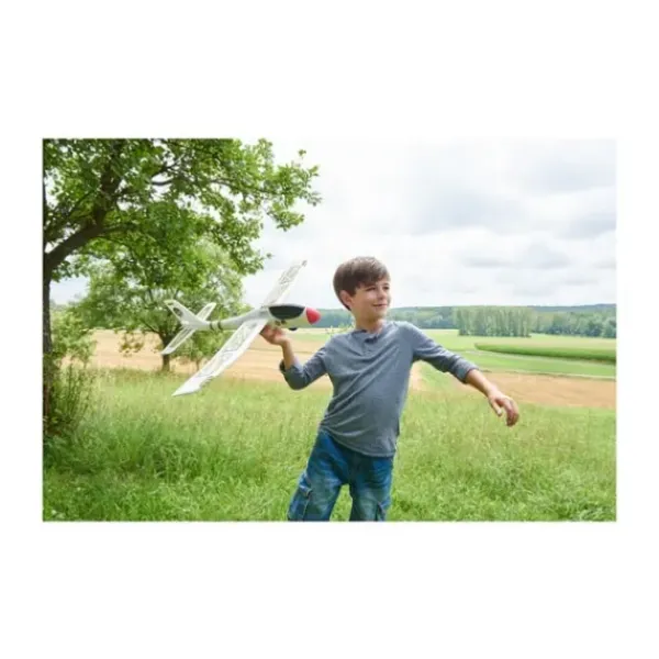 Deja Pret A Voler, Il Peut Aller A L’Exterieur Comme A L’Interieur. Il Possede Une Finition Realiste Et Un Ensemble De Radiocommande 2,4Ghz 3 Voies. Trois Niveaux D’Assistance Peuvent Etre Selectionnes Depuis L’Emetteur : Assistance 100%, Assistance Moderee 50% Ou Pas D’Assistance. Au Fur Et A Mesure Des Progres Du Pilote, On Peut Abaisser Le Niveau D’Assistance Puis S’En Dispenser Completement. Vous Pouvez Aussi Programmer Un Retour Dans L’Axe De Décollage. Grace A Sa Batterie Accu Li-Po, L’Avion Radiocommande Fun2Fly Trainer 500 Possede Une Autonomie De Vol De 20 Minutes Environ. Fonctions : Gouvernail (Droite/Gauche), Profondeur (Montee/Descente) Et Regime Moteur Proportionnels.